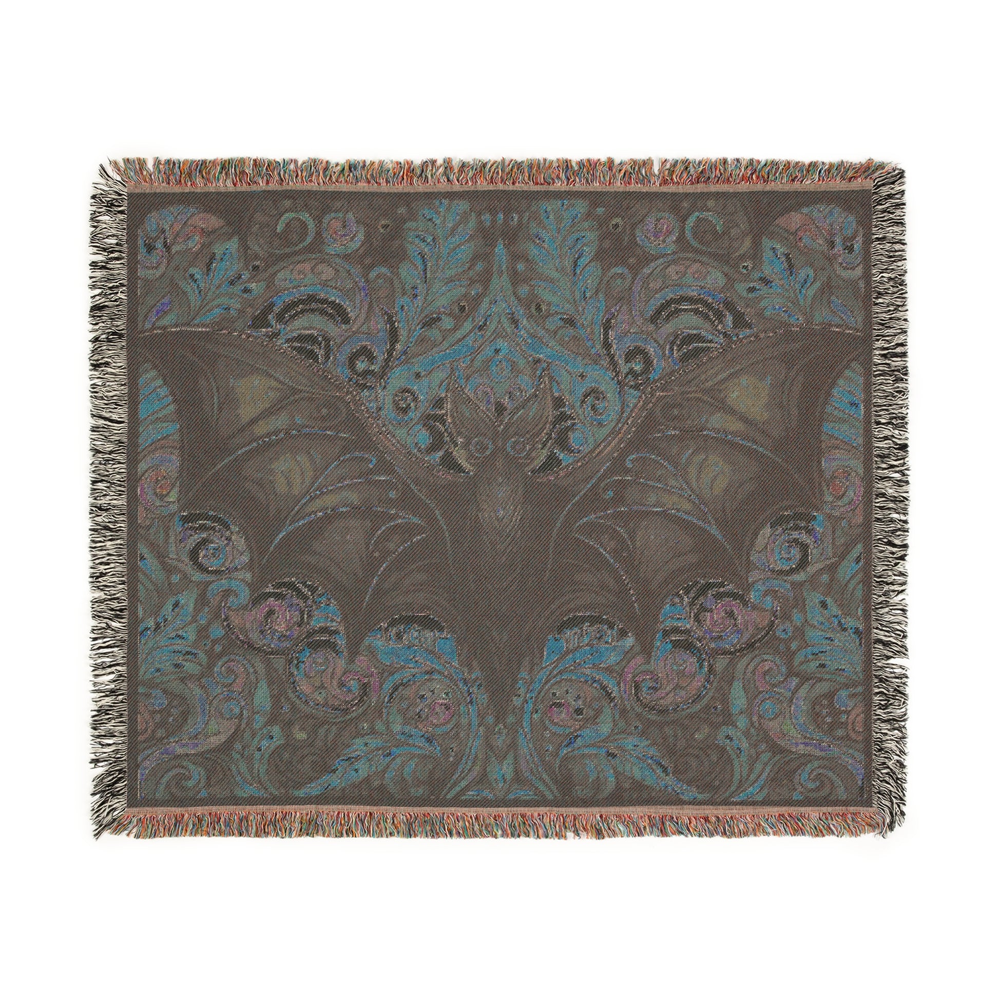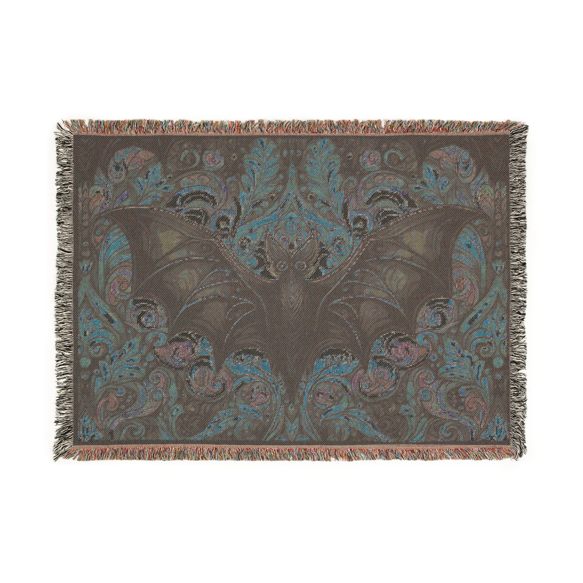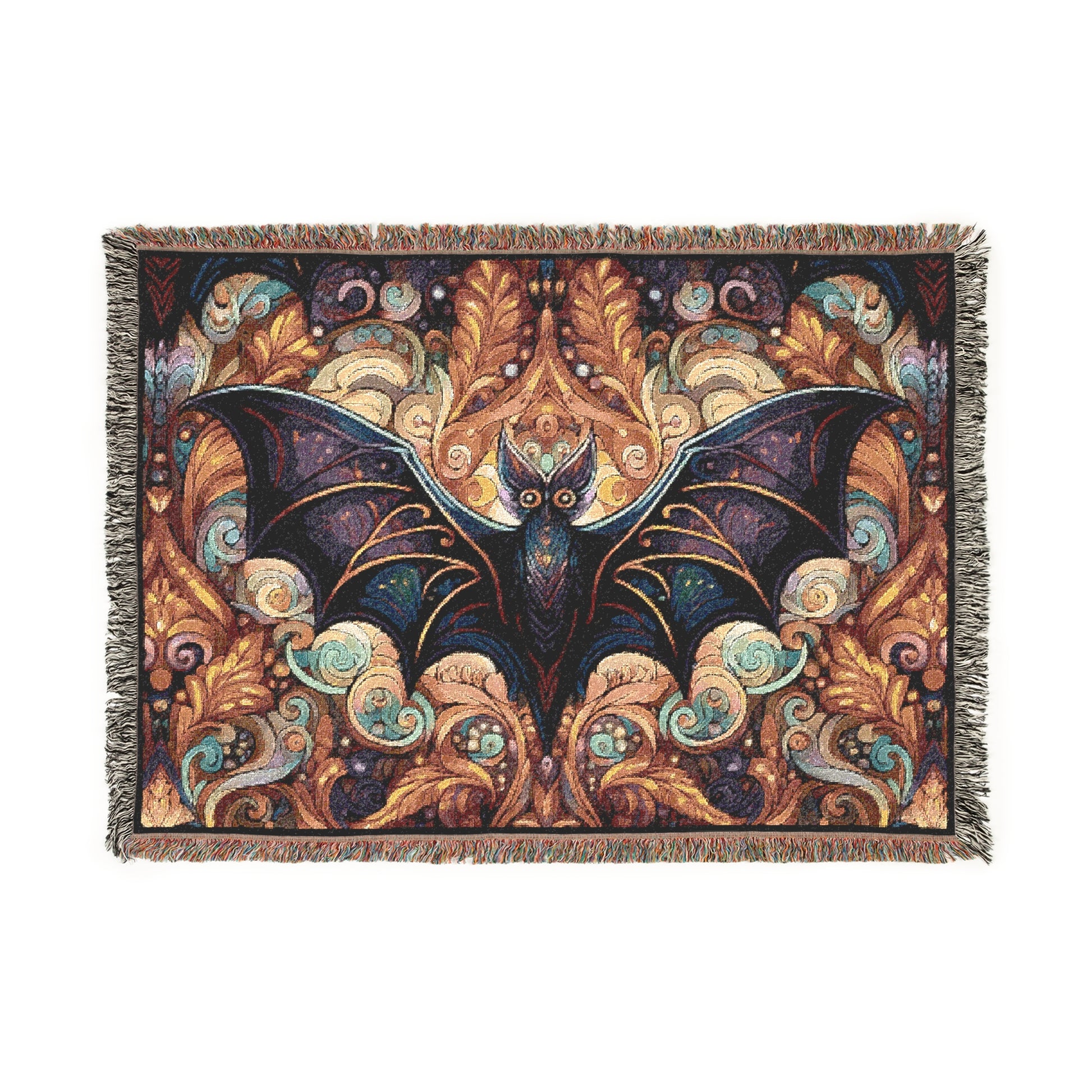 Psychedelic Bat- Woven Blanket, Cozy Throw, Home Decor, Halloween Gift, Gothic Blanket, Unique Gift for Bat Lovers, Goths