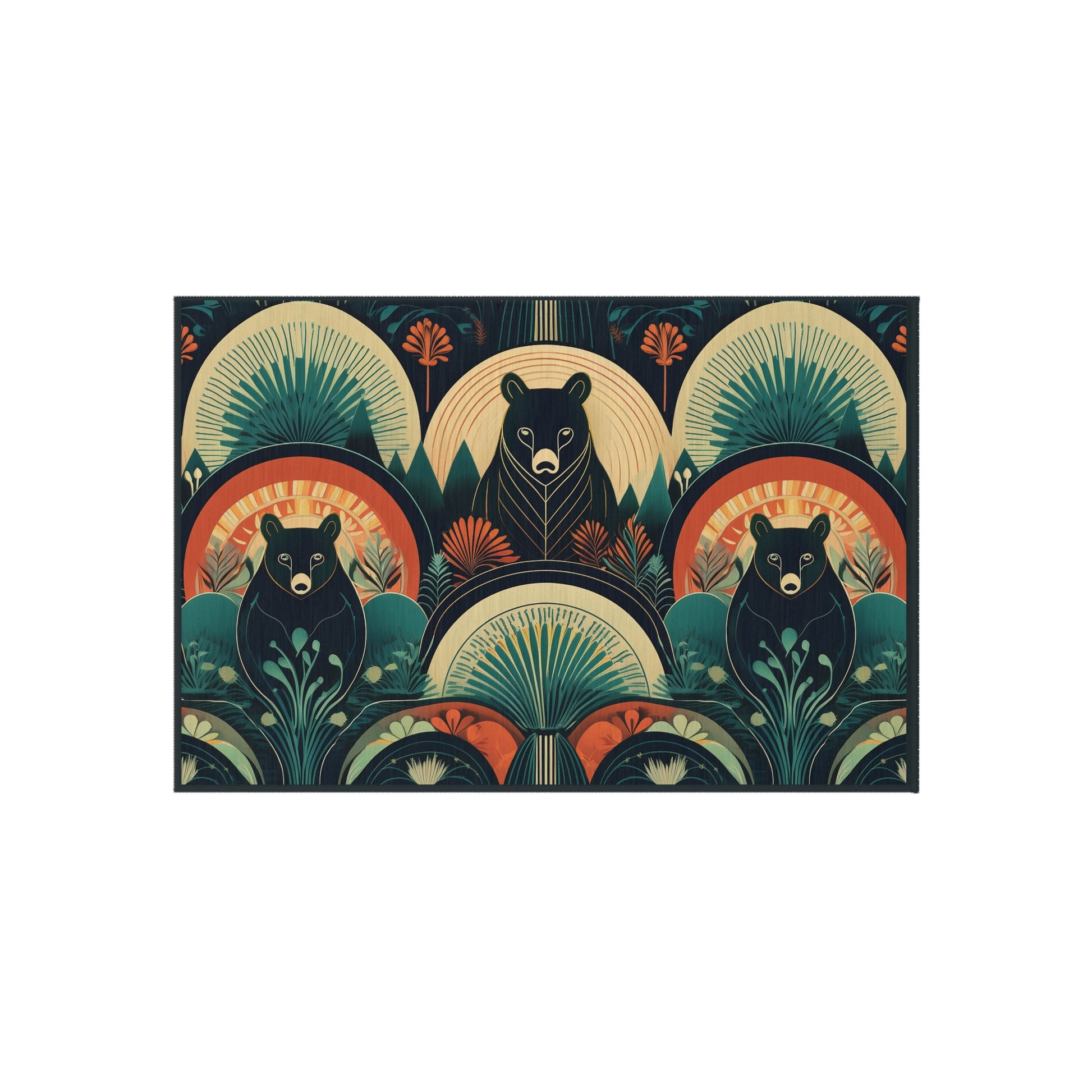 Bear Grove Outdoor Rug — Retro Forest Pattern Doormat for Patio & Entry