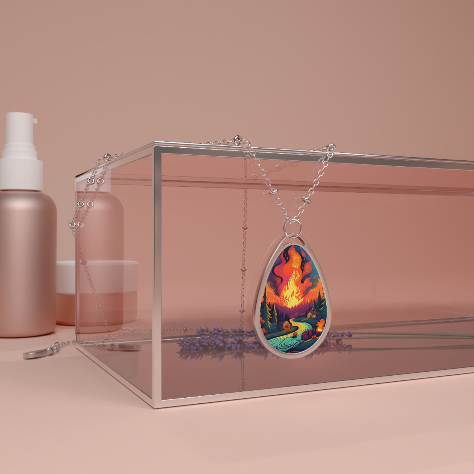 This Oval Necklace is a vibrant and colorful jewelry piece that features a design themed in a western forest fire. It makes for a unique gift for any occasion. The glossy finish and elipse shape add a touch of elegance to any outfit. Perfect for those who appreciate bold accessories and want to stand out. Product features - Vibrant colors with the latest printing techniques - Glossy finish for a polished look - Elipse shape for customization - Lobster clasp closure for security - Zinc alloy pendant and necklace chain Care instructions - Wipe the dust or any dirt off gently with a clean, dry cloth.